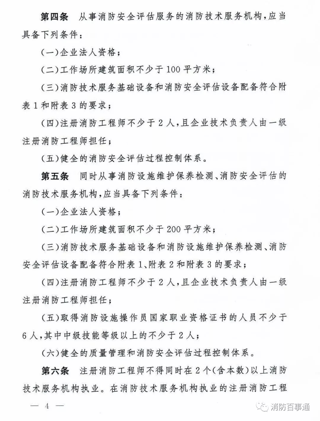 消防技术服务机构从业条件》发布,注册消防工程师不少于2人